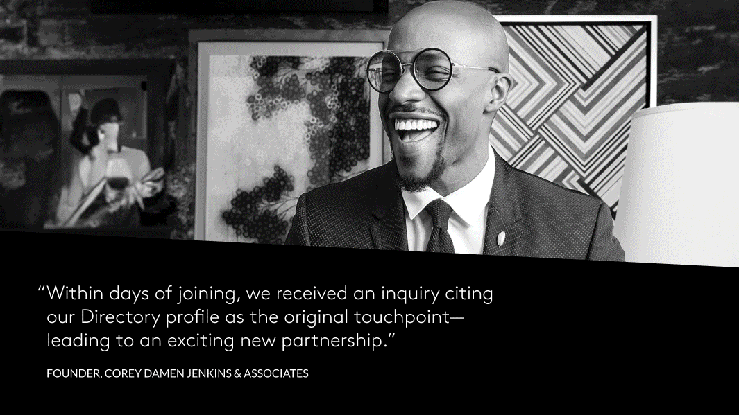 1. A short description of your firm’s services, style, and approach 2. An image of you, your team, or your logo 3. Four or more images of your work (JPEG or PNG)